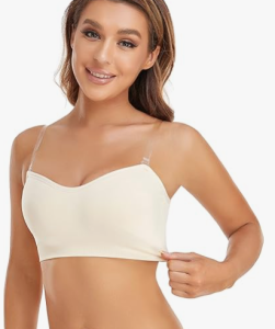 NON-SLIP STRAPLESS BRA WITH SILICONE: The strapless bra NON-SLIP SILICONE is placed on the top of the cups to help it stay in place all day long. Comes with a pair of adjustable, removable clear bra straps, so it can also be traditional wear.